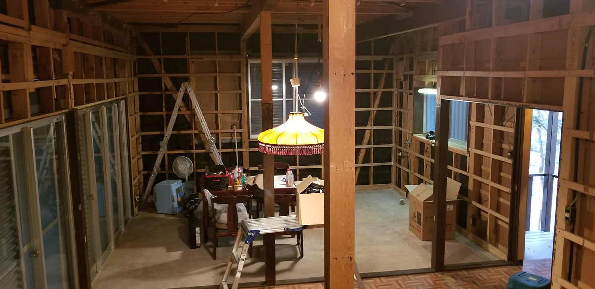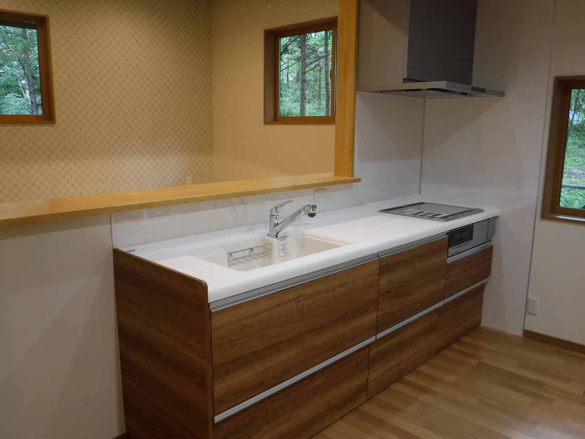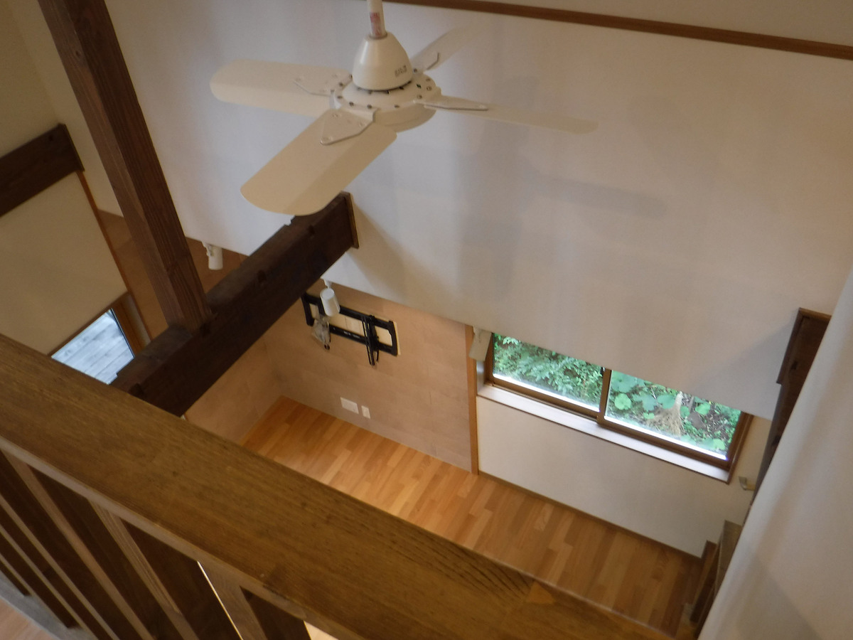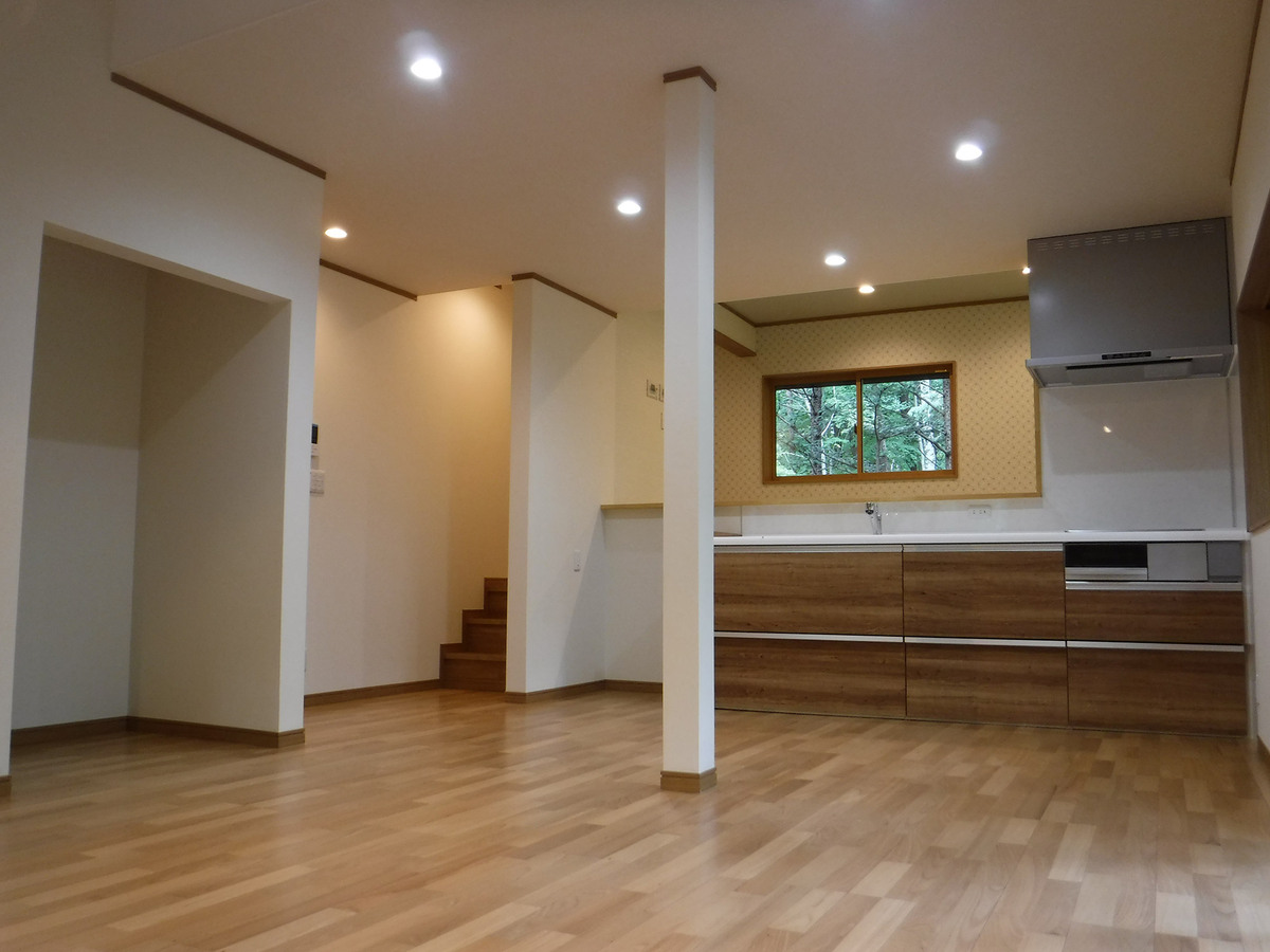 築40年のフルリノベーション物件です。通常のリノベーション工事とは違い、快適に長く過ごせるように、築40年を考慮した構造体の補強を行いました。間取りについても、従来の間取りではなかった吹き抜けを付け解放感を演出しました。1階部分の段差を活用したキッチンですが、段差上の和室にはお料理を楽しんだり、作業できるカウンターを設置致しました。リビング壁面一部には、エコカラットを施工し重厚感を演出致しました。また、御施主様のこだわりのライティングですが、実はBluetooth機能がついており、遠隔操作で調光・調色の調整が可能となっております。御施主様のこだわりが随所にある山荘となりました。